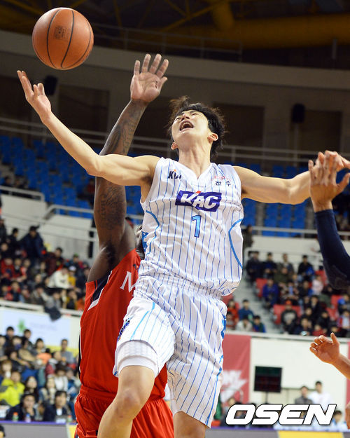 1쿼터 KCC 강병현이 모비스 라틀리프에게 블로킹을 당하고 있다. /ouxou@osen.co.kr