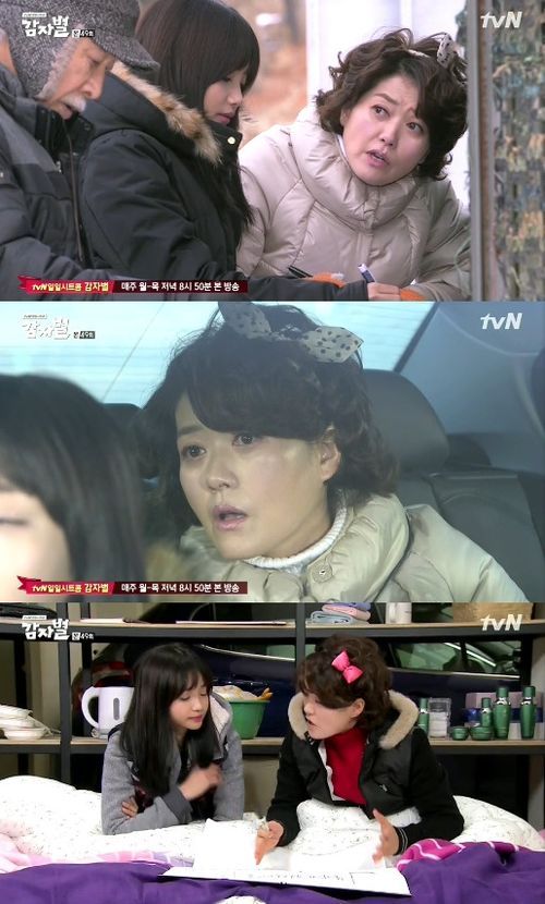 2일 오후 방송된 tvN '감자별 2013QR3'(이하 '감자별') 49회에는 나진아(하연수 분)의 모친 길선자(오영실 분)가 연초부터 날아든 희소식에 차고생활 탈출을 꿈꾸는 모습이 그려졌다.