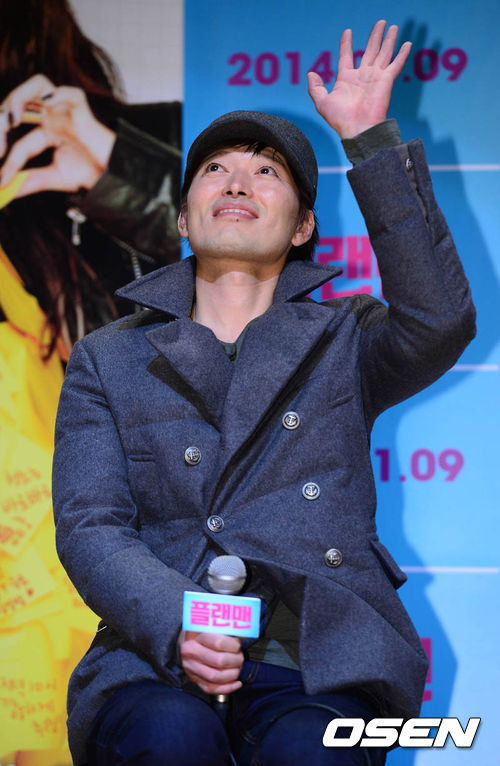 2일 오후 서울 회기동 경희대학교 평화의전당에서 열린 영화 '플랜맨' 쇼케이스에서 정재영이 팬들에게 손을 흔들고 있다.
