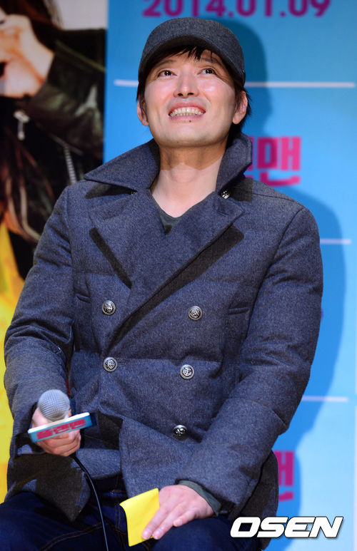 2일 오후 서울 회기동 경희대학교 평화의전당에서 열린 영화 '플랜맨' 쇼케이스에서 정재영이 관객을 올려다보고 있다.