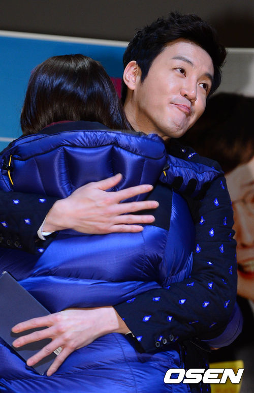 2일 오후 서울 회기동 경희대학교 평화의전당에서 열린 영화 '플랜맨' 쇼케이스에서 최원영이 한 팬과 포옹을 하고 있다.
