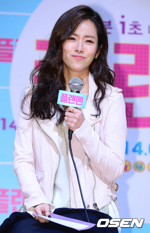 2일 오후 서울 회기동 경희대학교 평화의전당에서 열린 영화 '플랜맨' 쇼케이스에서 한지민이 미소를 짓고 있다.