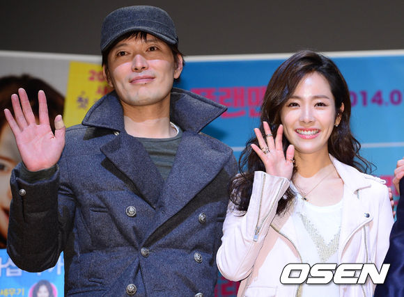 2일 오후 서울 회기동 경희대학교 평화의전당에서 열린 영화 '플랜맨' 쇼케이스에서 정재영과 한지민이 포토타임을 갖고 있다.
