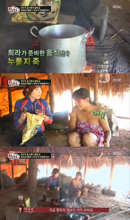 하희라는 2일 방송된 MBC 예능프로그램 '글로벌 홈스테이 집으로'(이하 '집으로')에서 아마존 원주민 아우뚜가 앓아 눕자 한국에서 가져간 누룽지를 이용해 직접 요리에 나섰다.