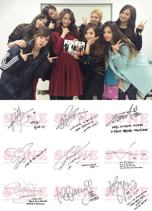 소녀시대 소속사는 지난 1일 공식 홈페이지를 통해 소녀시대 멤버 9명(윤아, 최수영, 효연, 유리, 태연, 제시카, 티파니, 써니, 서현)의 사인과 친필편지를 담은 사진을 공개했다.