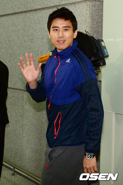 3일 오후 인천국제공항을 통해 독일로 출국하는 구자철이 카메라를 향해 손을 흔들고 있다.