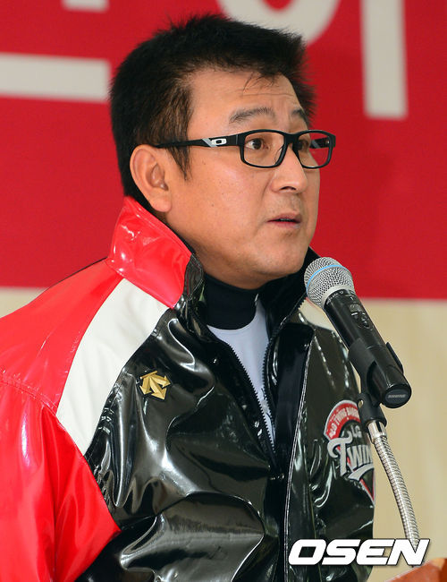 3일 오후 서울 잠실구장에서 열린 LG 트윈스 시무식에서 김기태 감독이 인사말을 하고 있다.