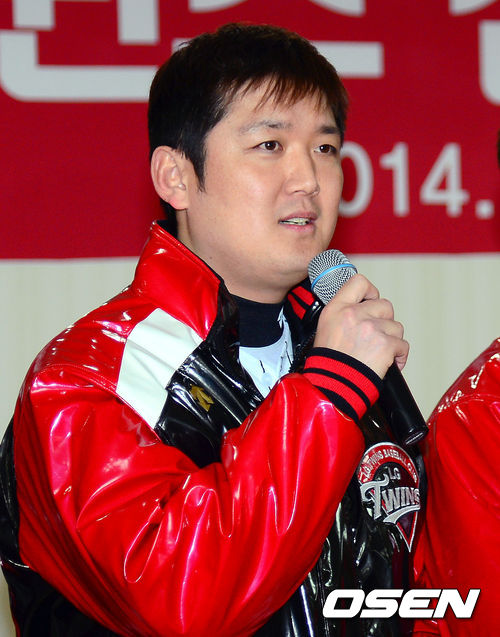 3일 오후 서울 잠실구장에서 열린 LG 트윈스 시무식에서 김선우가 인사말을 하고 있다.