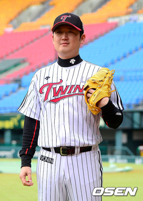 3일 오후 서울 잠실구장에서 열린 LG 트윈스 시무식에서 김선우가 포토타임을 갖고 있다.