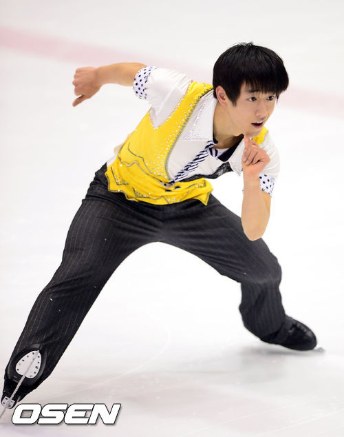 3일 오후 경기도 고양 어울림누리 얼음마루 빙상장에서 열린 제68회 전국남녀 피겨스케이팅 종합선수권대회(KB금융 코리아 피겨스케이팅 챔피언십 2014) 남자싱글 시니어부문 1위를 차지한 갑천고 김진서가 연기를 펼치고 있다..