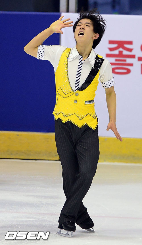 3일 오후 경기도 고양 어울림누리 얼음마루 빙상장에서 열린 제68회 전국남녀 피겨스케이팅 종합선수권대회(KB금융 코리아 피겨스케이팅 챔피언십 2014) 남자싱글 시니어부문 1위를 차지한 갑천고 김진서가 연기를 펼치고 있다..