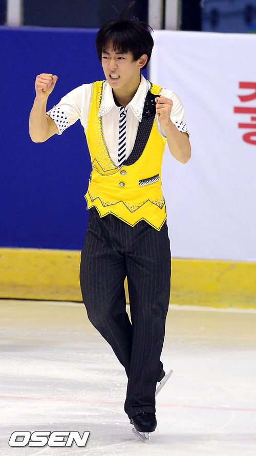 3일 오후 경기도 고양 어울림누리 얼음마루 빙상장에서 열린 제68회 전국남녀 피겨스케이팅 종합선수권대회(KB금융 코리아 피겨스케이팅 챔피언십 2014) 남자싱글 시니어부문 1위를 차지한 갑천고 김진서가 연기를 펼치고 있다..