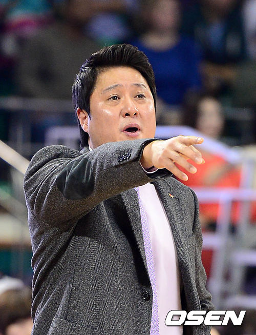 4쿼터 SK 문경은 감독이 선수들에게 작전을 지시하고 있다.
