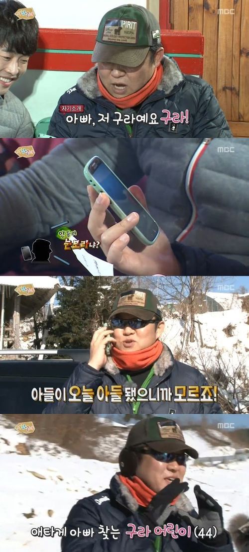 김구라는 3일 오후 방송된 MBC 예능프로그램 '사남일녀'에서 '부모님은 무조건 아빠, 엄마라 부른다'는 행동강령에 의해 처음 통화하는 가상 부친에게 "아빠"라고 불렀다.