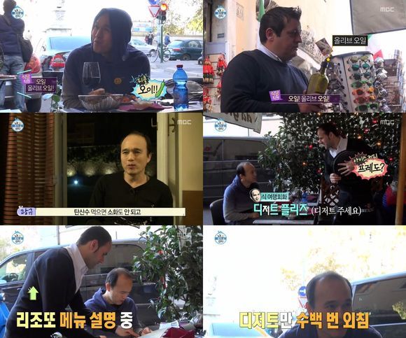 이어 김광규는 밋밋한 스파게티 맛에 피클을 요구했지만, "오이"라는 그의 말에 웨이터는 올리브 오일을 갖다줬다. 또 그는 "디저트"를 요구했지만, 웨이터는 다시 이를 알아듣지 못하고 "리조또" 메뉴를 갖다줘 민망한 상황이 연이여 연출됐다.