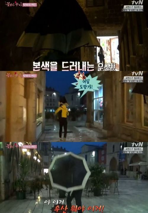 이승기는 지난 3일 오후 방송된 tvN 예능프로그램 ‘꽃보다 누나’에서 우산 때문에 곤욕을 치렀다.
