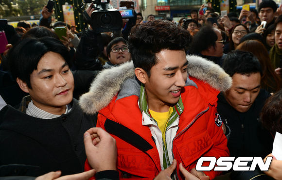 김성균과 손호준이 4일 오후 서울 명동 일대를 공약 이행차 방문, 팬들에게 인사를 하고 있다.