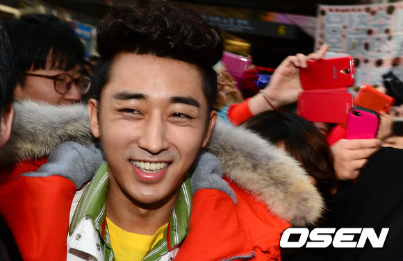 손호준이 4일 오후 서울 명동 일대를 공약 이행차 방문, 팬들에게 인사를 하고 있다.