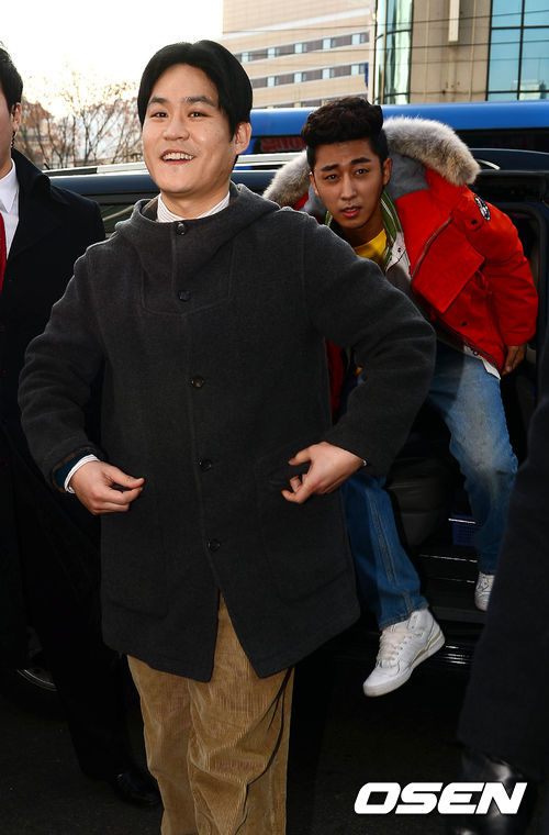 김성균과 손호준이 4일 오후 서울 명동 일대를 공약 이행차 방문, 승합차에서 내려 팬들을 바라보고 있다.