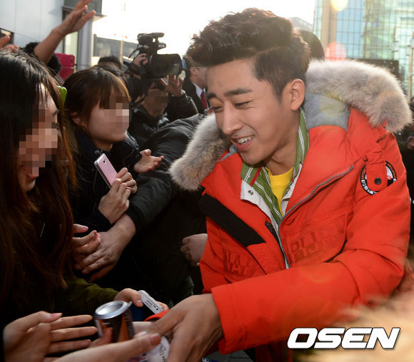 손호준이 4일 오후 서울 명동 일대를 공약 이행차 방문, 팬들에게 캔커피를 건내고 있다.