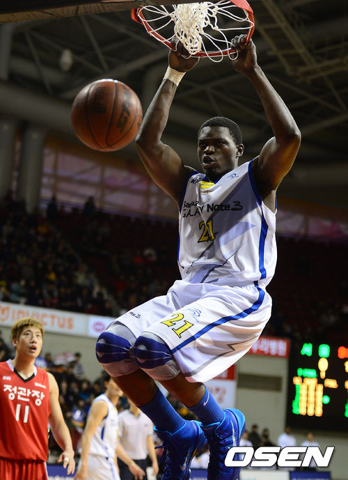 4일 오후 안양실내체육관에서 열린 'KB국민카드 2013-2014 프로농구' 안양KGC와 서울삼성의 경기, 1쿼터 삼성 더니건이 투핸드 성공시키고 있다.