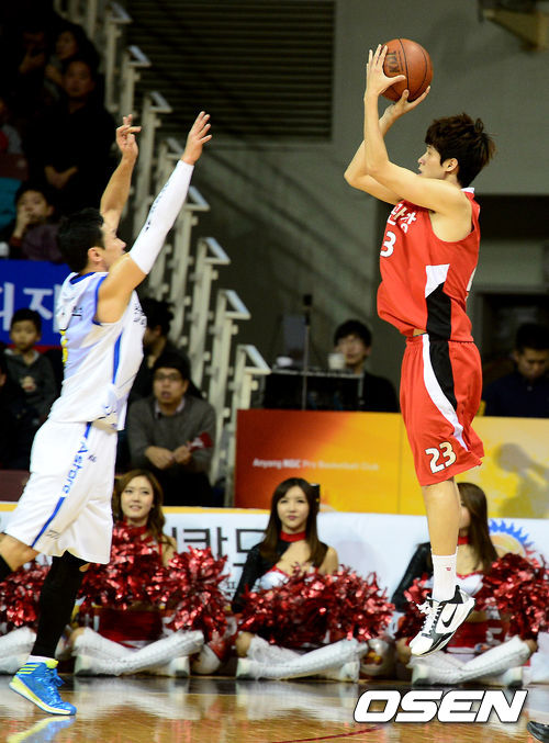 4일 오후 안양실내체육관에서 열린 'KB국민카드 2013-2014 프로농구' 안양KGC와 서울삼성의 경기, 1쿼터 KGC 전성현이 3점슛을 성공시키고 있다.