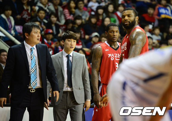 4일 오후 안양실내체육관에서 열린 'KB국민카드 2013-2014 프로농구' 안양KGC와 서울삼성의 경기, 2쿼터 KGC 맥키네스가 첫 출전을 앞두고 코트를 바라보고 있다.