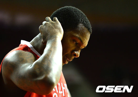 4일 오후 안양실내체육관에서 열린 'KB국민카드 2013-2014 프로농구' 안양KGC와 서울삼성의 경기, 2쿼터 KGC 맥키네스가 파울을 범하고 아쉬워하고 있다.