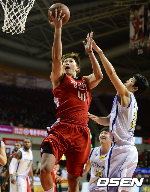 4일 오후 안양실내체육관에서 열린 'KB국민카드 2013-2014 프로농구' 안양KGC와 서울삼성의 경기, 3쿼터 KGC 오세근이 삼성 임동섭의 수비를 피해 레이업을 성공시키고 있다.