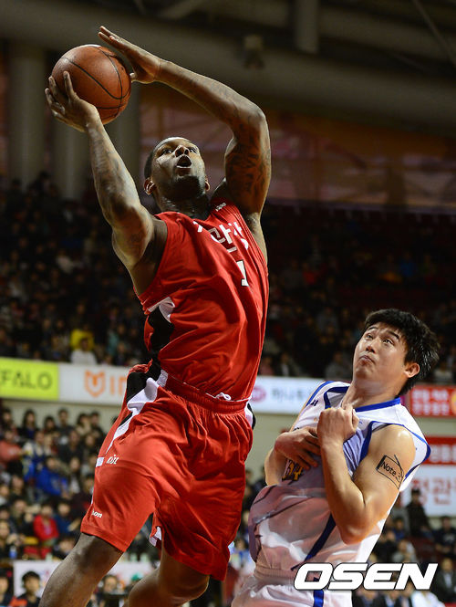 4일 오후 안양실내체육관에서 열린 'KB국민카드 2013-2014 프로농구' 안양KGC와 서울삼성의 경기, 3쿼터 KGC 맥키네스가 슛을 성공시키고 있다.