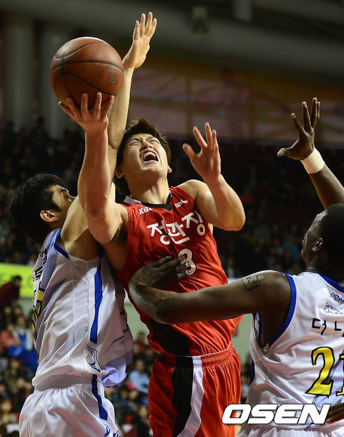 4일 오후 안양실내체육관에서 열린 'KB국민카드 2013-2014 프로농구' 안양KGC와 서울삼성의 경기, 4쿼터 KGC 최현민이 삼성 더니건의 수비를 피해 슛을 시도하고 있다.