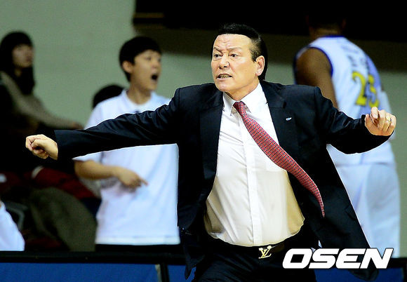 4일 오후 안양실내체육관에서 열린 'KB국민카드 2013-2014 프로농구' 안양KGC와 서울삼성의 경기, 4쿼터 삼성 김동광 감독이 심판 판정에 불만을 나타내고 있다.