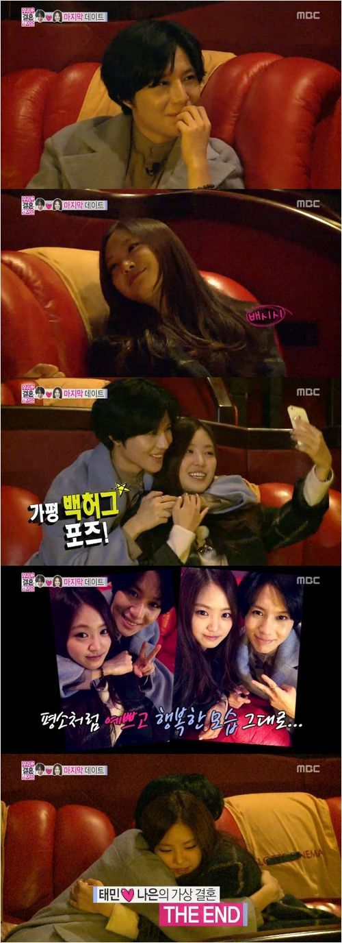 태민과 손나은은 4일 방송된 MBC 예능프로그램 ‘우리 결혼했어요 시즌 4’(이하 ‘우결4’)에서 가상 결혼 종료를 앞두고 함께 영화를 보러 갔다.