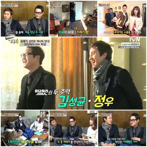 MC 김구라와 홍은희에게 하숙집 방 하나, 하나 구경 시켜주던 정우와 김성균은 각 장소에서의 명장면을 떠올려 시청자를 다시금 향수에 빠트렸다. 하숙생들이 모여 밥을 먹던 부엌의 식탁, 삼천포(김성균 분)와 해태(손호준 분)가 투닥대던 두 사람의 방 등 드라마 장면들이 마치 실제 있었던 일의 회상 같은 착각이 들기도 했다.