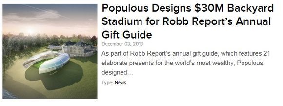‘퍼퓰러스(Populous)’라는 세계적인 스포츠 시설 전문 건설업체는 지난 연말 미국 럭셔리 잡지 ‘로브 리포트’를 통해 개인 스타디움의 조감도를 공개했다.