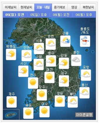 오늘 소한의 날씨는 전국이 대체로 맑겠고 서울 경기와 강원 영서지방은 낮까지 구름이 많다가 점차 맑아진다.
