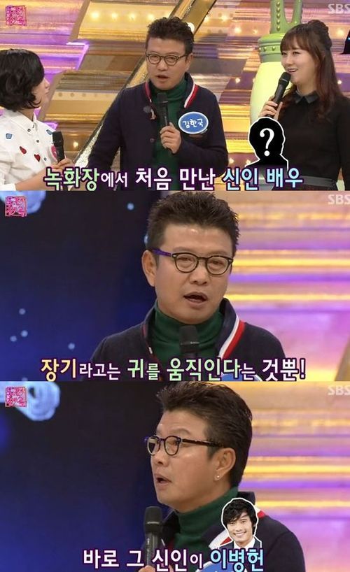 김한국은 "'가족오락관' 녹화를 갔더니 신인 남자배우가 있더라"며 "장기자랑 있으면 해보라고 했더니 '아무것도 없고 귀를 움직일 줄 안다'고 했다. 그게 이병헌이었다"고 말했다.