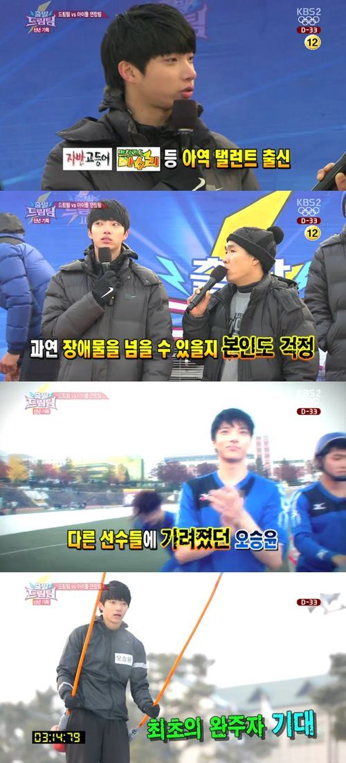과거 어린이 드라마 '매직키드 마수리', 청소년 드라마 '자반 고등어' 등에 출연한 바 있는 오승윤은 독특한 예능감으로 웃음을 자아내기도 했다. 그는 자신이 팀의 주장이라고 나서며 "우리 팀 순서는 이미 정해져있다"고 거드름을 피웠다.