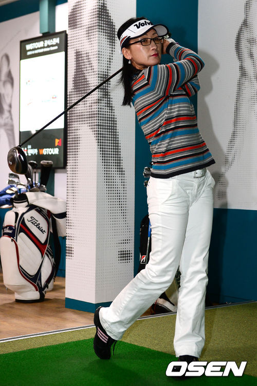 5일 오전 경기도 시흥시 화인비전스크린에서 열린 kt금호렌터카 2013-2014 WGTOUR 윈터시즌 3차 대회에서 오미영이 드라이버샷을 날리고 있다.