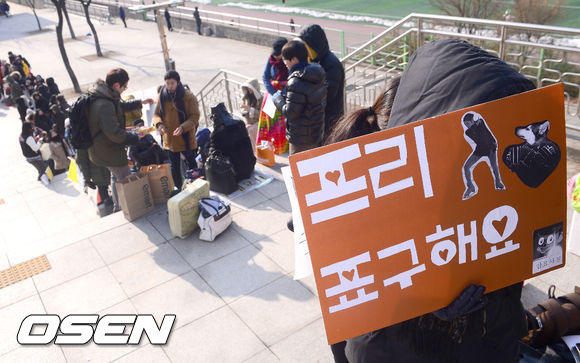 5일 오후 경기도 고양시 고양 어울림누리 얼음마루 빙상장에서 열리는 제68회 전국남녀피겨스케이팅종합선수권대회 'KB금융 코리아피겨스케이팅챔피언십 2014' 여자 싱글 프리스케이팅을 앞두고 표를 못구한 피겨 팬들이 현장에서 표를 기다리고 있다.