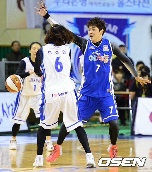 한편 메인 경기에 앞서 전주원, 정은순, 정선민, 유영주 등 현역 시절 최고의 기량을 선보였던 화려한 멤버들이 KBS 2TV 예능 프로그램 '우리동네 예체능'팀과 한판 승부를 겨루었다. 우지원 코치가 이끄는 연예인 농구팀에는 가수 박진영, 존박, 배우 서지석, 줄리엔강, 김혁, 모델 이혜정 등이 참가했다./sunday@osen.co.kr