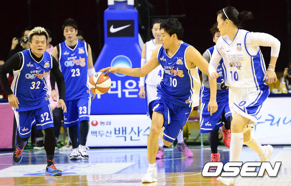 한편 메인 경기에 앞서 전주원, 정은순, 정선민, 유영주 등 현역 시절 최고의 기량을 선보였던 화려한 멤버들이 KBS 2TV 예능 프로그램 '우리동네 예체능'팀과 한판 승부를 겨루었다. 우지원 코치가 이끄는 연예인 농구팀에는 가수 박진영, 존박, 배우 서지석, 줄리엔강, 김혁, 모델 이혜정 등이 참가했다./sunday@osen.co.kr