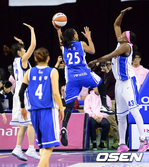 한편 메인 경기에 앞서 전주원, 정은순, 정선민, 유영주 등 현역 시절 최고의 기량을 선보였던 화려한 멤버들이 KBS 2TV 예능 프로그램 '우리동네 예체능'팀과 한판 승부를 겨루었다. 우지원 코치가 이끄는 연예인 농구팀에는 가수 박진영, 존박, 배우 서지석, 줄리엔강, 김혁, 모델 이혜정 등이 참가했다./sunday@osen.co.kr