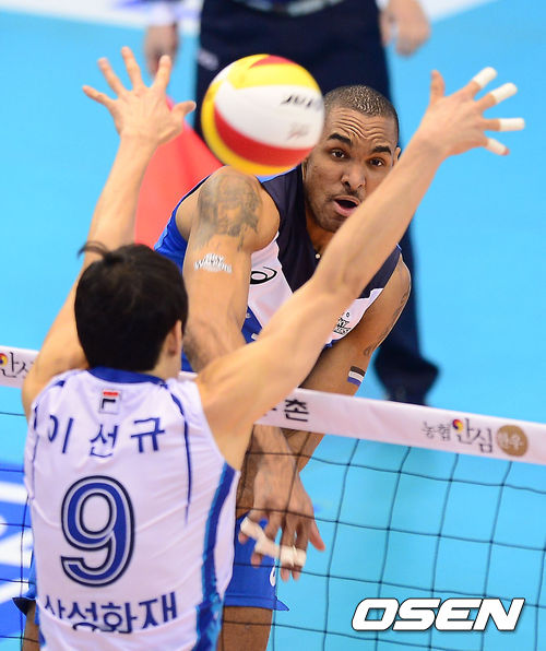 5일 오후 대전 충무실내체육관에서 '2013-2014 NH농협 V리그' 남자부 삼성화재와 현대캐피탈의 경기, 현대캐피탈 아가메즈가 강타를 날리고 있다.