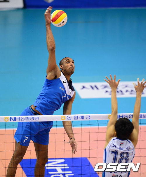 5일 오후 대전 충무실내체육관에서 '2013-2014 NH농협 V리그' 남자부 삼성화재와 현대캐피탈의 경기, 현대캐피탈 아가메즈가 강타를 날리고 있다.