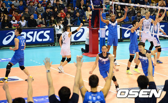 삼성화재를 잡고 파죽의 7연승을 내달린 현대캐피탈은 12승4패(승점35)를 기록하며 삼성화재(승점33)를 따돌리고 선두로 올라섰다. / rumi@osen.co.kr