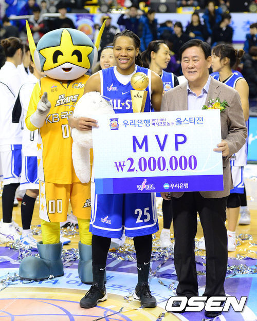 우리은행 2013-2014 여자프로농구 올스타전이 5일 오후 2시 춘천호반체육관에서 개최됐다. 남부선발은 중부선발을 98-90으로 물리치고 승리를 차지했다. 28점을 올린 모니크 커리(31, KB스타즈)는 기자단투표에서 총 59표 중 유효득표 34표를 얻어 MVP로 선정되는 영광을 안았다.