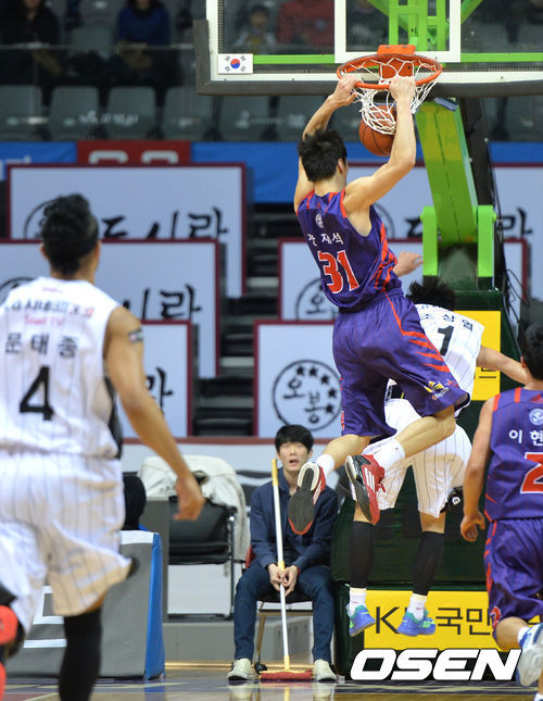 2쿼터, 오리온스 장재석이 투핸드 덩크를 성공시키고 있다.