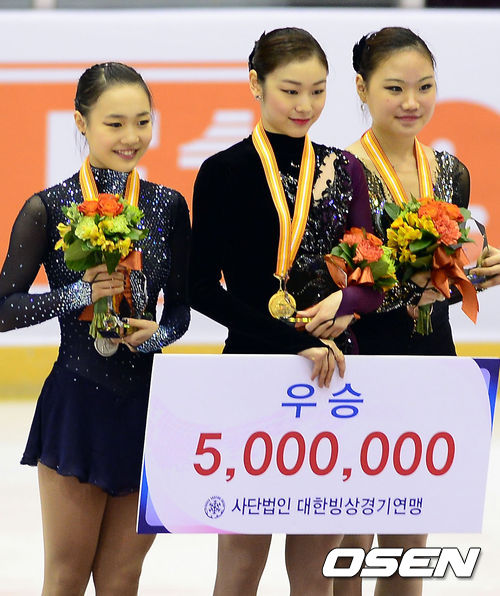 김연아는 5일 고양 어울림누리 얼음마루 빙상장에서 열린 제68회 전국남녀피겨스케이팅종합선수권대회 'KB금융 코리아피겨스케이팅챔피언십 2014' 여자 싱글 프리스케이팅서 기술점수(TES) 70.05점 예술점수(PCS) 77.21점을 받아 합계 147.26점을 기록, 전날 쇼트프로그램 점수 80.60점을 더한 227.86점을 받아 우승을 차지했다. 이날 김연아가 기록한 점수는 2010 밴쿠버동계올림픽 당시 228.56점 이후 개인통산 역대 2번째로 높은 점수다.