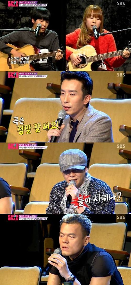 양현석은 5일 오후 방송된 SBS 예능프로그램 '일요일이 좋다-K팝스타3'에서 공동 자작곡 '썸띵(Something)'을 열창하는 정세운, 김아현의 무대에 이 같이 평가하며 "연주에서 저렇게 호흡을 잘 맞추나 생각했다"고 말했다.